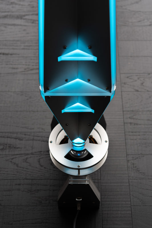 UMX Light Shuttle - Multi-functional Designer Floor Lamp with Integrated Speaker, Ambient Lighting, Side Table, Metallic Pickup, and Bauhaus Aesthetics