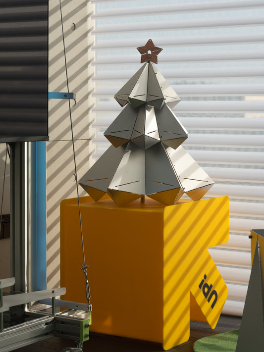 UMX Silver Glow Atmosphere Light Metal Tree Handmade Folding Designer Model Atmosphere Light With Three-Tone Lighting Package Bauhaus Style